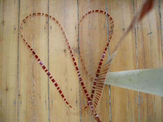| Strip 2005, clear film leader, ruby lithographers tape |
